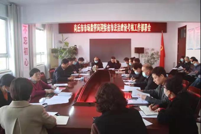 为深入贯彻习近平法治思想,落实年初省、市关于法治建设工作部署,12月2日,商丘市市场监管局召开迎接法治政府建设考核工作部署会议。局长戚征伦参加会议并作重要讲话,市局机关各科室负责人、直属单位负责人参加会议。