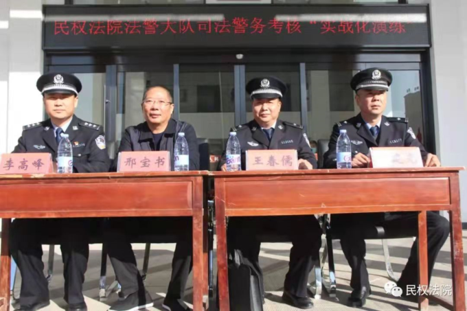 12月3日,商丘市中级人民法院法警支队直属大队大队长王春儒一行到民权县法院检查司法警务工作,并对“实战化演练”进行考核。院党组书记、院长邢宝书对王春儒一行实地检查考核司法警务工作表示欢迎,同时,希望中院法警支队一如既往地关心支持民权法院工作,进一步加大指导力度,促使民权法院警务工作再上新台阶。院党组成员、副院长李玉法陪同检查考核工作。