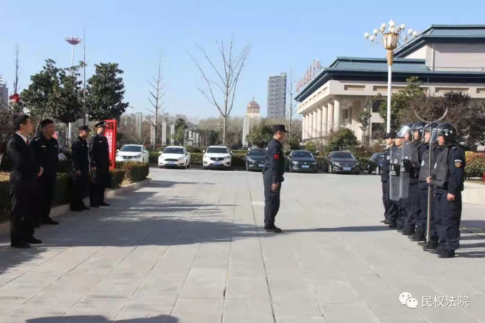 之后,王春儒一行在院党组成员、副院长李玉法,法警大队大队长朱亚光的陪同下,分组对该院的日常警务管理、队伍建设、警务保障、设施装备及“六专四室”建设等情况进行了检查。在反馈会上,王春儒对民权法院“实战化演练”考核情况和司法警务工作取得的成绩给予了充分肯定。他希望民权法院继续发扬光荣传统,珍惜荣誉,进一步提升实战技能,不断适应新形势、新时代,新使命、新要求。