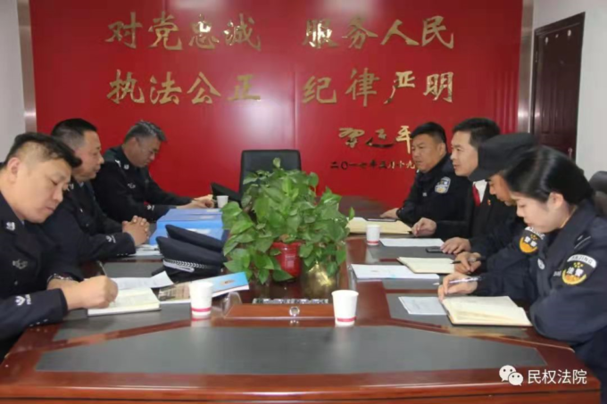 商丘市中院法警支队直属大队大队长王春儒一行到民权法院检查考核警务工作