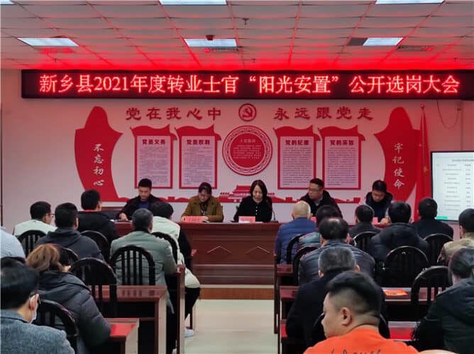 12月7日,新乡县举行2021年转业士官阳光安置选岗现场会,17名符合安置士官通过“阳光安置”找到各自心仪的县直部门事业全供岗位,实现安置率、选岗率、满意率三个100%。