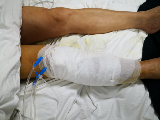 这可怎么办?高尚武科主任及林娟护士长立即组织召开了科室会议,高尚武主任指出:医者仁心,患者的病情刻不容缓,我们作为医生要排除因难及心中顾虑,及时为患者手术切开并进行负压引流,积极预防感染及下肢静脉血栓形成。