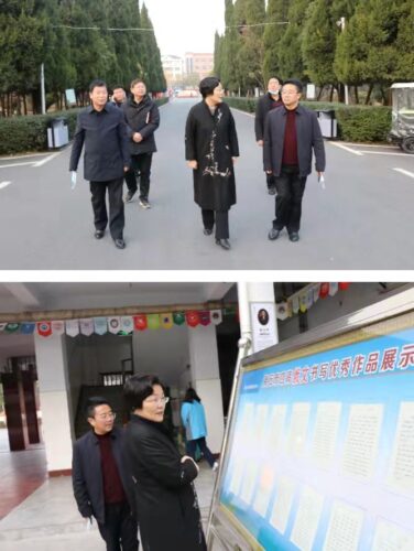 12月7日下午,商丘市一高校长牛超、商丘市基础教育教研室主任王桂书等赴商丘市四高调研。