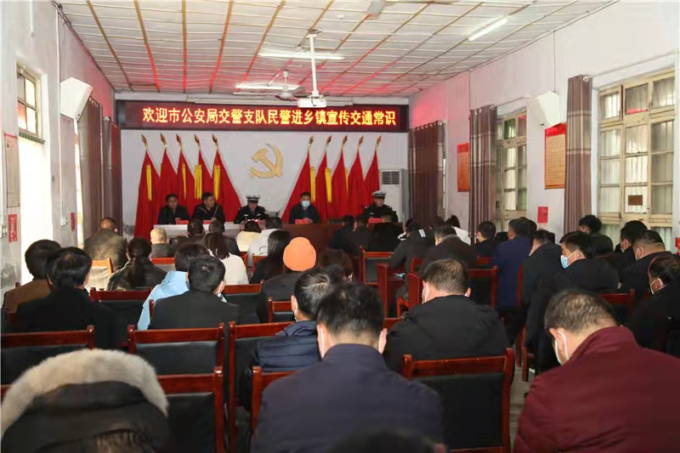 12月9日,为进一步增强广大农村干部群众的交通安全意识,提高自我防范能力,预防和减少道路交通事故的发生,商丘市公安局交警支队、商丘日报社、睢阳区司法局联合走进睢阳区毛堌堆镇政府为100余名干部群众送上了一堂生动的道路交通安全知识课,宣传讲解道路交通安全法律法规和事故预防知识。通过形式多样、寓教于乐的宣传活动,将交通安全知识送到农村群众的身边。这是该支队联合商丘日报在全市范围内开展交通安全宣传进农村和“美丽乡村行”交通安全巡回宣传活动的又一缩影,旨在进一步强化农村地区交通安全宣传工作,全力预防农村道路交通事故。商丘市公安局交警支队警务保障大队副大队长吴先涛,商丘日报社记者李良勇,睢阳区司法局党组书记、局长朱敏和办公室主任崔文轩,睢阳区毛堌堆镇党委副书记李良杰,交警支队直属二大队宣传民警王豪杰和毛堌堆中队中队长李伟峰等参加了活动。