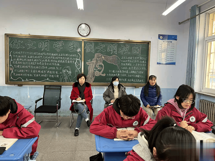 本次听课评课重在关注“双减”政策下课堂教学质量。上午前两节领导们深入课堂,听取了七年级史秀霞老师的语文课;八年级郭二凤老师的数学课、郭艳霞老师的语文课;九年级姚冬梅老师的语文课和贾新峡老师的数学课。