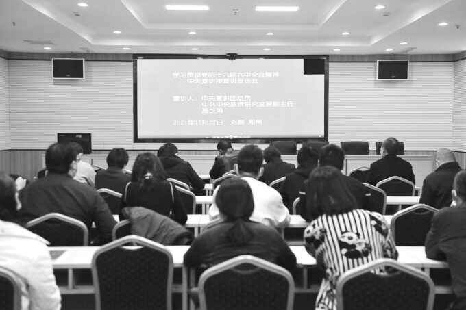 本报讯 12月10日,省知识产权局组织全体干部职工集中观看学习贯彻党的十九届六中全会精神中央宣讲团在豫宣讲报告会,深入学习报告会精神。
