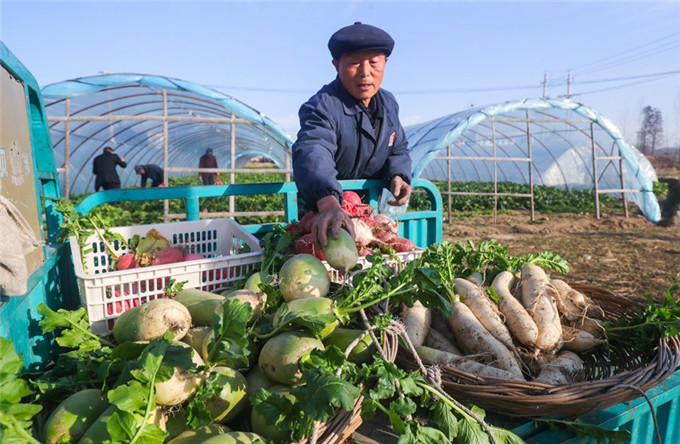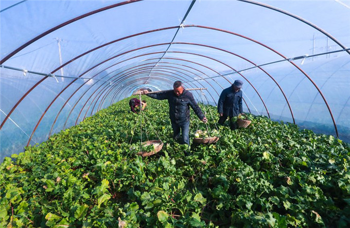 12月19日电(于思远)河南省信阳市光山县司马光小镇升辉合作社为了用产业带动更多社员致富,引进种植高效品种水果青萝卜、红萝卜,现在喜获丰收。