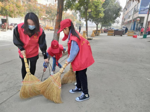 随后,校长带领志愿者们到街村开展社会实践活动。志愿者们拿着清扫工具井然有序的向目的地出发。