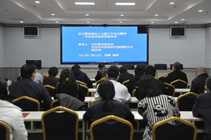 此次报告全面深入、准确深刻,既有思想高度,又有理论深度、实践厚度,具有很强的理论性、思想性和指导性,对深入学习贯彻党的十九届六中全会精神是一次系统辅导。省知识产权局全体干部职工将牢记楼阳生书记在报告会上的谆谆教导,把贯彻落实党的十九届六中全会精神,与贯彻习近平总书记视察河南重要讲话重要指示贯通起来,与落实省第十一次党代会部署结合起来,把党的十九届六中全会精神转化为河南省知识产权强省建设的强大动力,在“十四五”开局之年开好局、起好步,推动知识产权工作服务河南经济高质量发展,以优异成绩迎接党的二十大胜利召开。(胡士林 文/图)