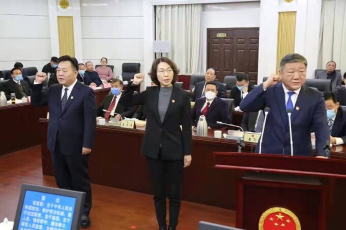 市委常委、组织部部长吕娜到会介绍有关人事事项。拟任地方机关工作人员作任前发言。会议听取审议并表决通过了有关人事任免议案。李思杰为新任命人员颁发了任命书,新任命人员进行了宪法宣誓。