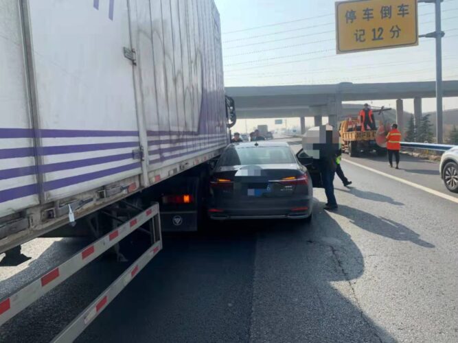 “高速公路上车辆多、速度快、路况千变万化,你这样莽撞冒失不观察路况开车非常危险,极易引发事故!所幸今天的事故没有造成严重后果,但是,如果你不从这次事故中吸取教训,下一次也许你就没有如此‘幸运了’!”黑色轿车司机心有余悸地说:“不观察路况就变道真是太危险了,现在想想都后怕!”