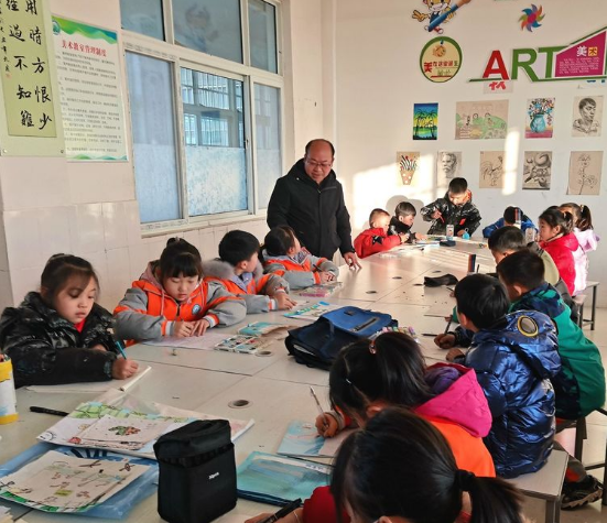 温培生校长在查看美术社团活动