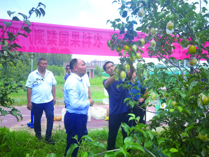 优质梨课题分别在兰考县兰阳街道办事处的朱庄社区农科果园和三义寨乡丁圪垱村的仟盛种植专业合作社设立了两个基地,引进示范秋月、华山、红香酥、黄冠和中梨一号等5个新品种,示范了标准化建园、省工密植栽培、花果管理、测土配方平衡施肥、肥水一体化管理、病虫害绿色防控6项技术。课题组向朱庄社区和兰考县仟盛种植专业合作社分别提供了花粉、防鸟网、疏果剪、梨苗、滴灌耗材等物资,全年累计提供技术指导17次,发放技术资料700余份。今年9月3日,在院县共建农科果园梨测产现场会上,经专家现场测定,红香酥和秋月梨亩产在2600公斤以上,优质果率在85%以上,园区亩效益万元以上。