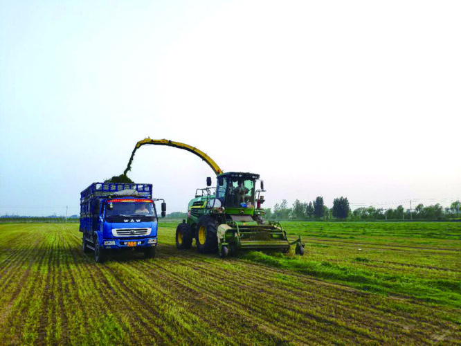 据介绍,该专题示范优良紫花苜蓿品种5个,建立苜蓿示范基地3个,示范面积5600亩;集成兰考县黄河滩区紫花苜蓿规模化栽培、高水分青贮、“苜蓿—饲用燕麦—青贮玉米”轮作复种技术3项,在河南花花牛科技农牧公司打造的“苜蓿+春燕麦+夏玉米+牛粪还田”牧养循环模式获得企业好评,目前正开展牛场粪污资源收集、贮存、处理环节的技术集成;开展了4种不同糖原对高水分苜蓿青贮发酵动态及苜蓿混贮研究,获得了苜蓿新的青贮发酵剂产品组合;普查了兰考县苜蓿土壤肥力状况,制定了苜蓿施肥方案,应用推广2.6万亩。
