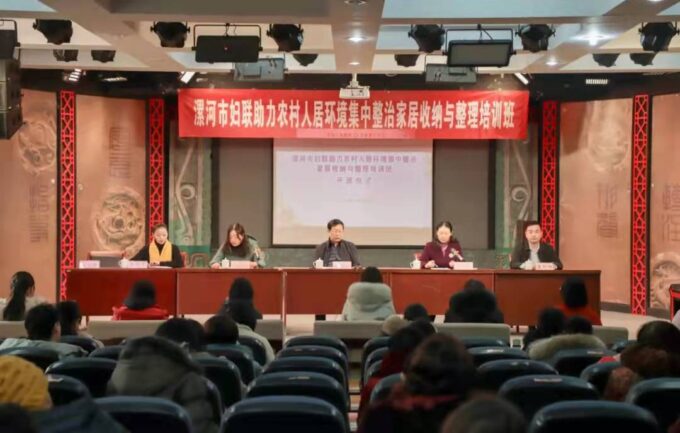 为改善农村人居环境,推动“五美庭院”建设,帮助农村女性提升管家理家水平,培育乡村振兴女性人才,2021年12月26日,漯河市妇联助力农村人居环境集中整治家居收纳与整理培训班,在漯河市许慎文化园正式开班。市农村人居环境集中整治专班办公室副主任、市农业农村局三级调研员李连合,市妇联党组成员、副主席、三级调研员孙颍华,市改善农村人居环境领导小组办公室综合科干部冯晓娟,市妇联组织部(发展部)部长翟昕阳,漯河濦阳书院院长余芳芝出席开班仪式。全市三区三功能区的60多名村妇联干部和村妇女代表,部分热爱生活、愿意提升家庭收纳整理水平的群众代表报名参加培训。市改善农村人居环境领导小组办公室综合科干部冯晓娟,传达了《漯河市农村人居环境集中整治行动方案》有关精神。现场为基层巾帼志愿者代表赠送巾帼志愿者服装。漯河濦阳书院院长余芳芝宣读了《争创“五美庭院” 建设美丽乡村——漯河市妇联助力农村人居环境集中整治行动倡议书》。市妇联组织部(发展部)部长翟昕阳宣读了《培训班管理规定》,明确了本期培训班管理五项制度。