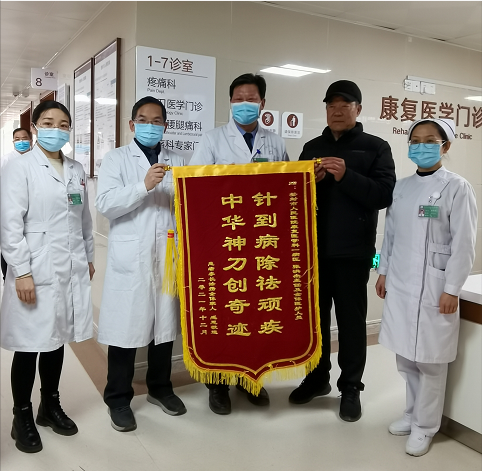 12月29日上午10点钟,登封市人民医院内锣鼓喧天,热闹非凡。只见一位身体矍铄的老人满怀感激之情的将一面写有“针到病除祛顽疾,中华神刀创奇迹”的锦旗递到登封市人民医院颈肩腰腿痛康复科的张洪杰主任手中。