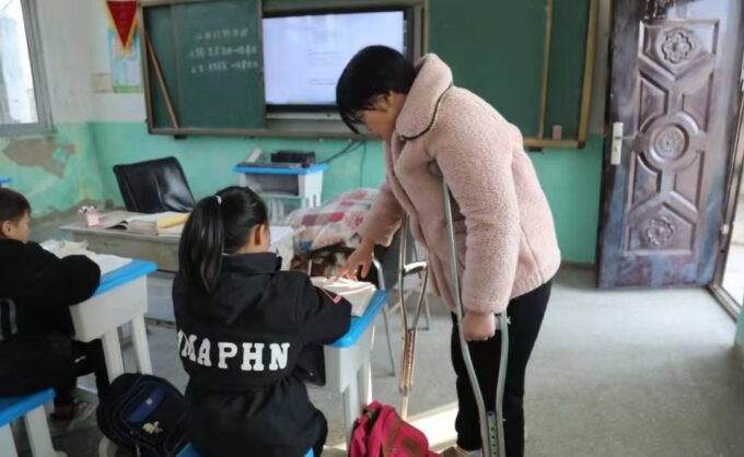 “为了不耽误学生的课程,李娟老师拄着双拐坚守讲台,她默默地履行教书育人、为人师表的神圣职责,把满腔的热情奉献给学生,她用实际行动践行了新时代四有好老师的标准,我们为她爱岗敬业的精神点赞!”该校业务主任吴素敏说。