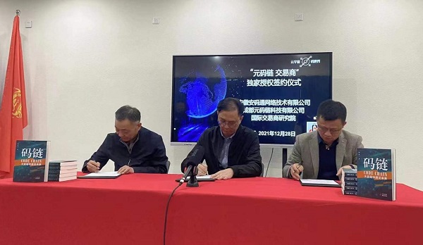 12月28日下午,“元码链交易商”独家授权签约仪式在码链成都运营中心顺利举行,码链思想创始人、二维码“扫一扫”全球专利发明人、“元码链模型”创始人、CCNC董事局主席、苏州科技大学、山西财经大学客座教授徐蔚博士,码链成都运营中心负责人、成都元码链科技有限公司创始人林碧波先生,名电码创始人、国际交易商研究院组织者冯继福先生分别代表安徽安码通网络技术有限公司、成都元码链科技有限公司对国际交易商研究院进行独家授权。
