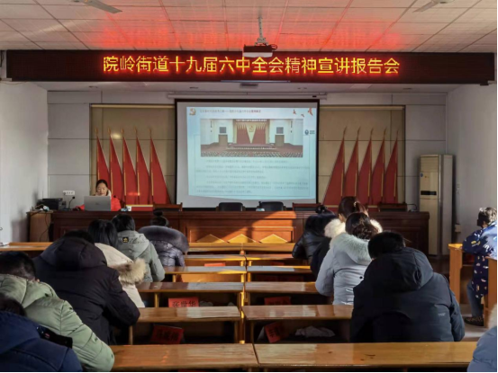 为学习贯彻党的十九届六中全会精神,12月29日下午,舞钢市院岭街道按照市统一部署,在街道四楼会议室召开学习党的十九届六中全会精神市委宣讲团宣讲报告会,街道党工委委员张晓辉及机关干部职工、村(社区)书记参加学习。