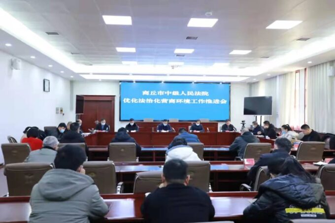 12月30日下午,商丘中院组织召开优化法治化营商环境工作推进会。中院党组成员、副院长崔海林出席并讲话。市发改委、市财政局、市金融工作局等11家单位与市非公经济发展服务中心负责人应邀参加。会议旨在深入贯彻省第十一次党代会、市第六次党代会精神,加大优化法治化营商环境攻坚力度,形成强大工作合力,切实解决重点难点问题。