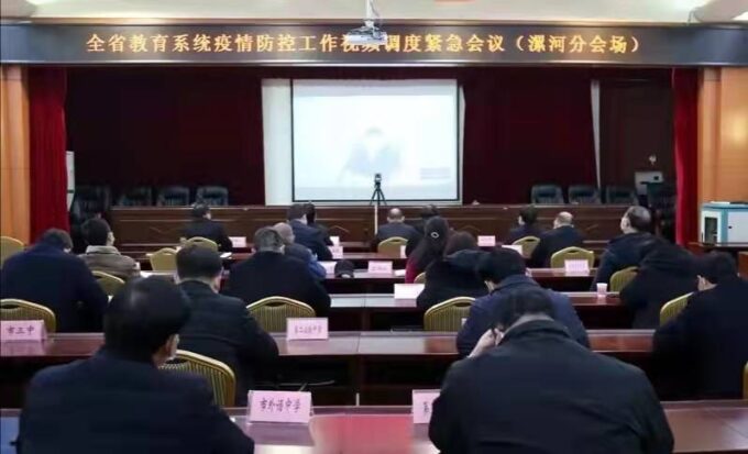 为贯彻落实党中央、国务院和省委、省政府疫情防控有关部署,安排近期全省教育系统疫情防控工作,1月4日上午,河南省教育系统疫情防控工作视频调度会召开,漯河市委教育工委书记、市教育局党组书记、局长甘德建,市教育局领导孙洪义、吕登峰、李耀广、陈海涛、周英民、刘磊、刘盘松、高伟玲及市属各学校校长在市教育局分会场收听收看。