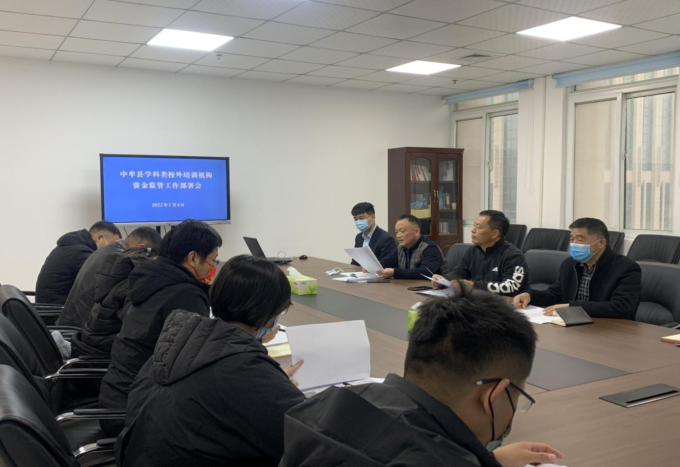 1月4日下午,中牟县教育局召开义务教育阶段学科类校外培训机构资金监管部署会。县教育局、工商银行及中牟县6家学科类校外培训机构负责人和财务人员参加会议。