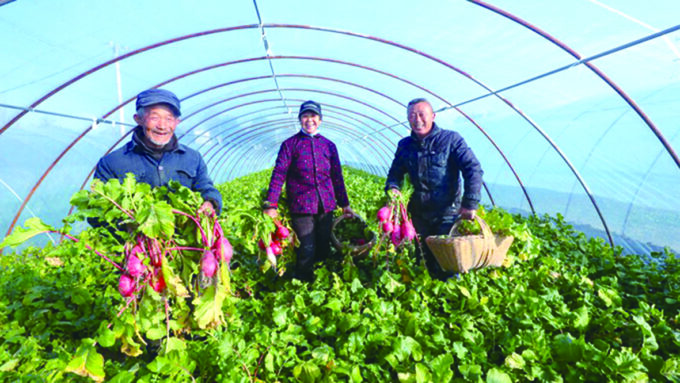 近日,信阳市光山县司马光小镇升辉合作社引进种植的水果青萝卜、红萝卜喜获丰收。 据悉,该合作社不仅吸纳当地村民在家门口就业,还把种植水果青萝卜、红萝卜的技术传授给当地农民,带领更多农民走上致富路。图为合作社社员正在采收水果萝卜。 谢万柏 摄