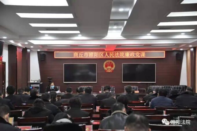 会议还组织观看了《永远在路上》等廉政教育片,警示教育干警以案为鉴,在实际工作中严守政治纪律和政治规矩,严格落实防止干预司法“三个规定”,进一步加强党性修养,坚定理想信念,营造风清气正的政治生态,推动全面从严治党向纵深发展。