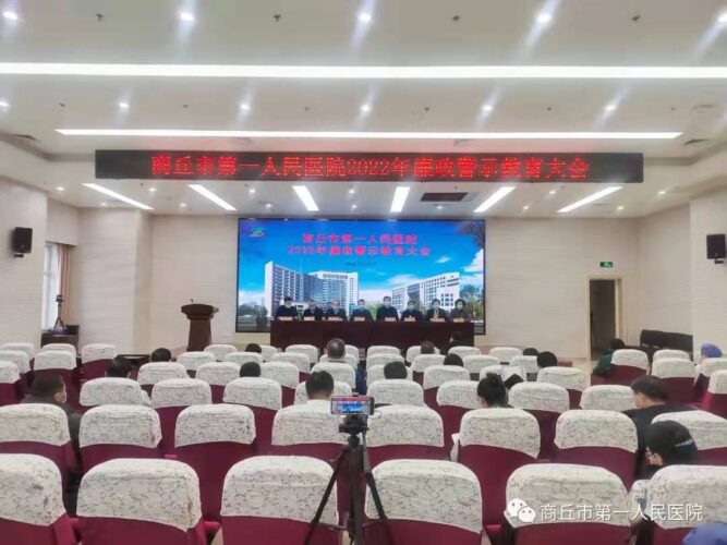 1月7日下午,商丘市第一人民医院在儿科医技楼17楼会议室召开了2022年廉政警示教育大会。党委书记、院长韩传恩出席会议并讲话。纪委书记刘世界宣读了《商丘市纪委监委通报五起违反中央八项规定精神典型问题》,结合医院实际情况进行了“双节”廉政谈话。会议由党委副书记李传中主持。院领导赵乐营、王春玉、寇学斌、石红英、张玉玲和各职能科室负责人、总支书记、系科主任、科护士长参加现场会议,其他职工以科室为单位通过视频连线收听收看了会议。
