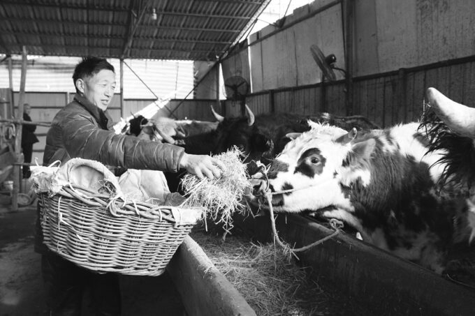 1月10日,平顶山市湛河区曹镇乡杨西村村党支部委员海龙卫正在喂牛。近年来,曹镇乡以党建引领为抓手,以乡村振兴为目标,引导农民因地制宜发展肉牛养殖产业,带动村民增收致富,取得了良好的效果。 王毛生 摄