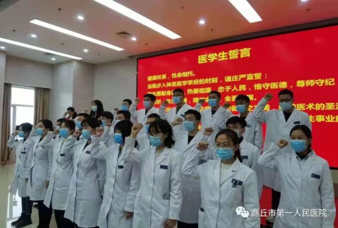 商丘市第一人民医院作为国家级住院医师规范化培训基地,注重引导住培医师将个人理想融入实现全民健康的崇高事业中,坚持理论与实践相结合的培养模式,提升岗位胜任力,培养了一批批高素质的住培医师。在这场没有硝烟的战“疫”中,住培医师年轻的背影穿梭在“疫”线,他们目光坚定、没有迟疑,不畏艰险、冲锋在前,用实际行动践行着“健康所系,性命相托”的铮铮誓言,更彰显了青春的担当和力量。