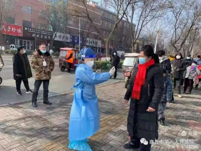 1月12日,商丘市第一人民医院要紧急抽调300名职工支援商丘市睢阳区新城办事处进行第二轮全员核酸检测。