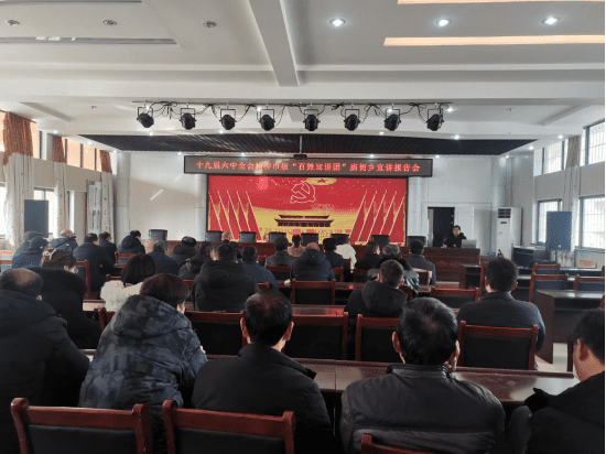 近日,党的十九届六中全会精神宣讲报告会在舞钢市庙街乡九龙山社区举行,冷岗村、湖沟村村两委、党员参加。活动围绕深刻认识总结党的百年奋斗重大成就和历史经验的重大意义、党的百年奋斗的初心使命、中国特色社会主义新时代的历史性成就和历史性变革等方面,用通俗易懂的语言,对党的十九届六中全会精神进行了全面宣讲和系统解读。