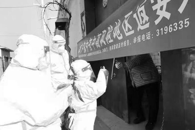 图①李欢正在用手机扫描居家隔离人员的身份信息。