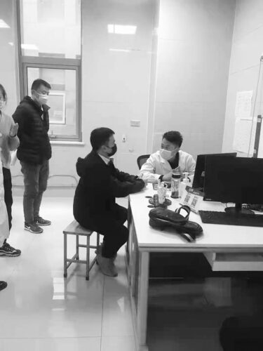 王秋生(右)正在给患者问诊。