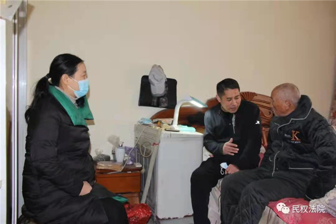 1月21日上午,民权县人民法院党组成员、政治部主任赵昌见一行,受院党组书记、院长邢宝书委托,先后看望慰问了离休老干部林景高、王振海,祝他们身体健康,节日愉快。