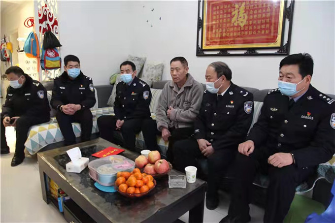1月27日上午,在2022年新春佳节即将来临之际,商丘市公安局党委委员、副局长李明星,市局政治部组教处处长赵崇杰,交警支队党委委员、警务保障大队大队长张明星和交警支队政工部门负责人王志刚一行带着新春的祝福和对困难民警、职工的关心、关爱,代表市局和交警支队慰问了单位在外执行任务的民警和困难职工,并送去了慰问品和慰问金。交警高速大队教导员焦军民、交警直属二大队大队长郭刚等陪同。
