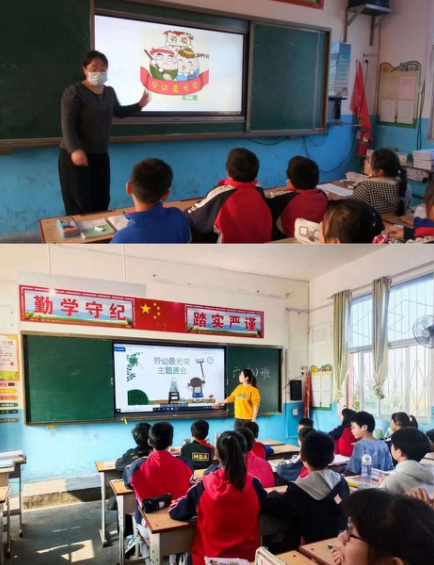 各班开展了“快乐劳动 幸福成长”——劳动教育主题班会活动。班会上,同学们分享了自己的劳动成果,畅谈自己参加劳动的感受.在班主任的引导下,大家更加懂得要尊重劳动者,尊重劳动成果,树立正确的劳动观念。