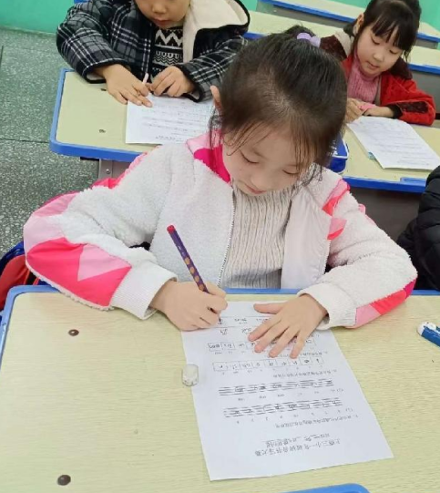 比赛中,同学们坐姿端正,执笔规范,牢记书写要领:头正,身直,脚放平。手离笔尖一寸,胸离课桌一拳,眼离书本一尺。老师教的“三个一”牢记心间,在书写过程中,小朋友们的坐姿、执笔姿势标准、规范。
