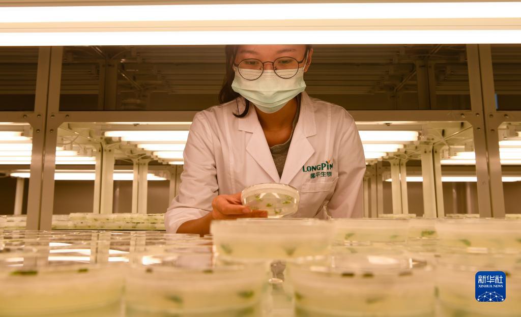 在海南省三亚市崖州湾科技城的崖州湾种子实验室,隆平生物技术公司科研人员在开展科研工作(2021年11月25日摄)。新华社记者 杨冠宇 摄