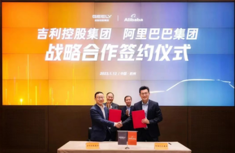 1月12日,吉利控股集团与阿里巴巴集团签署战略合作协议(下称“协议”)。吉利控股集团首席执行官李东辉、阿里巴巴集团首席市场官董本洪代表双方签约,吉利控股集团董事长李书福和阿里巴巴集团董事会主席兼首席执行官张勇共同见证。