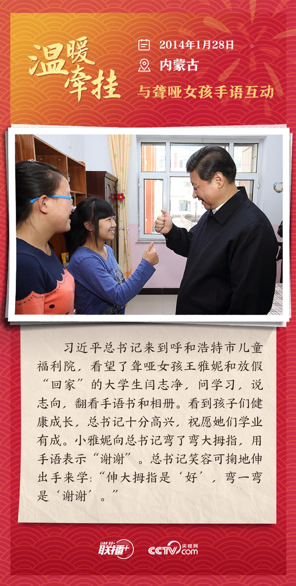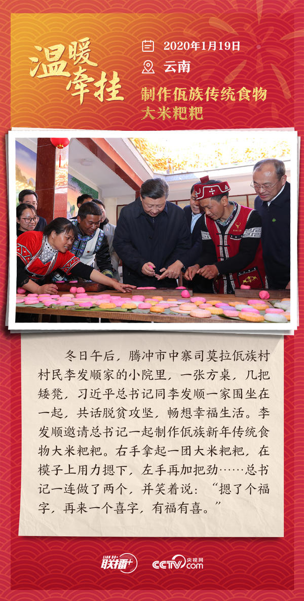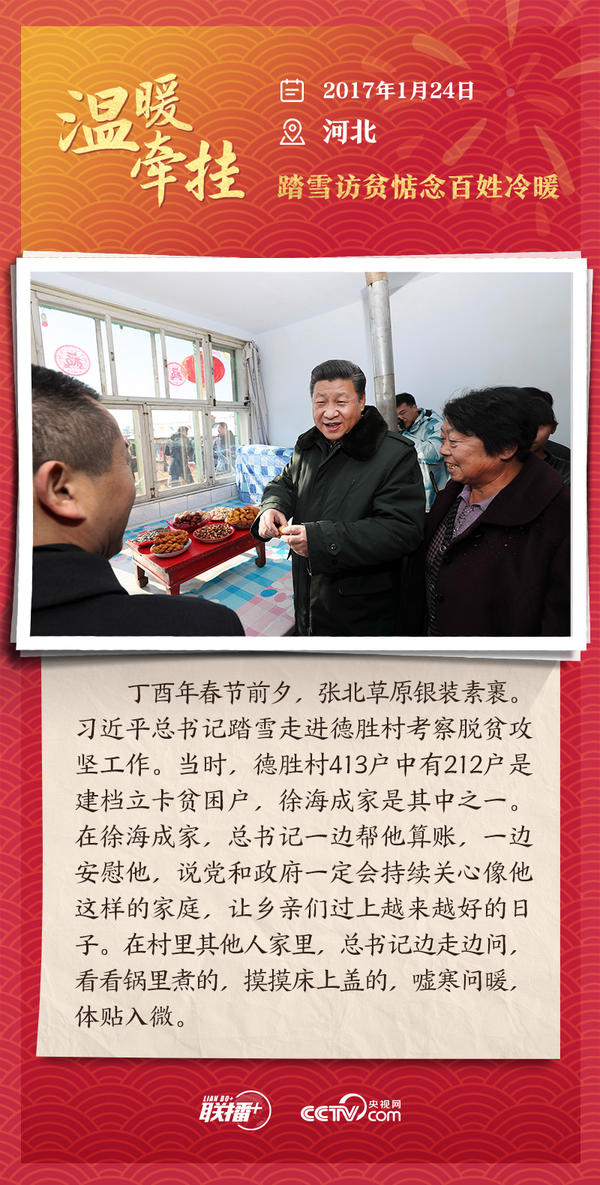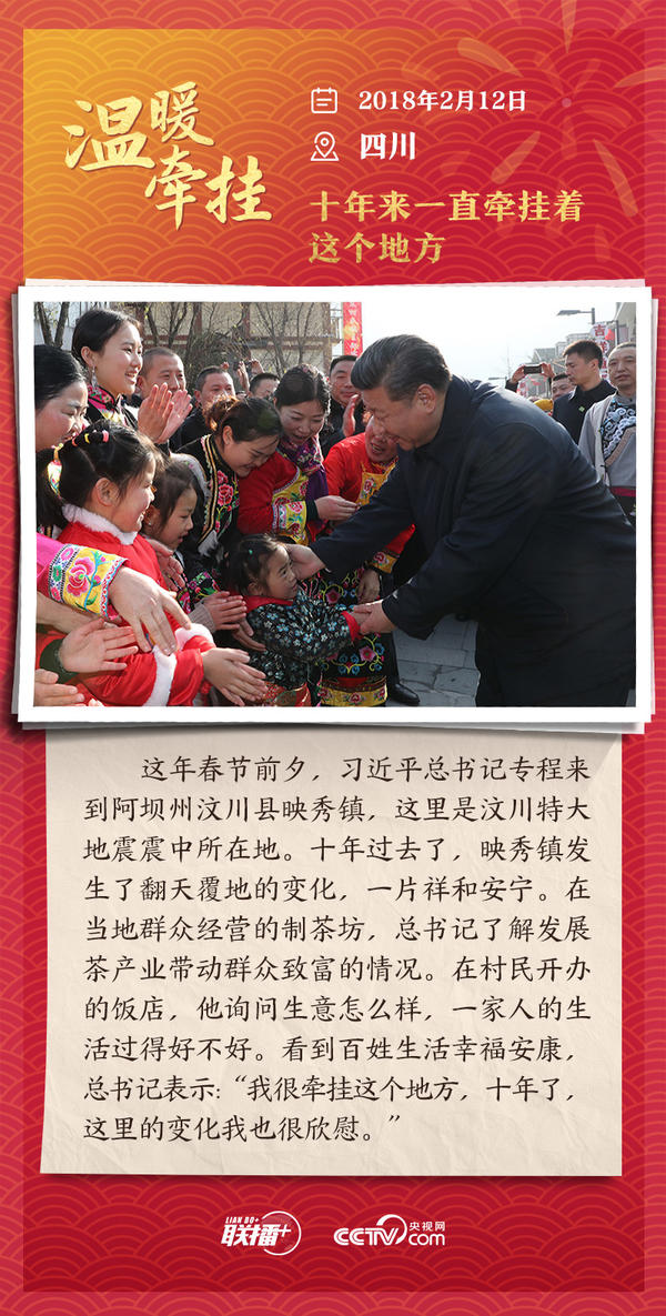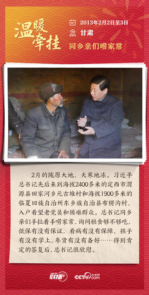 编者按:“大国之大,也有大国之重。千头万绪的事,说到底是千家万户的事。”从2013年起,每逢春节前夕,习近平总书记都会来到群众身边,拉家常、问冷暖,听民声、送祝福。央视网《联播+》特推出“温暖牵挂”系列,与您一同重温总书记与大家在一起的温暖故事,感受浓浓的领袖情怀。