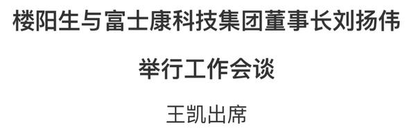 2月22日上午,省委书记楼阳生与富士康科技集团董事长兼总经理刘扬伟一行在郑州举行工作会谈。省长王凯出席。