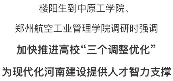 2月23日,省委书记楼阳生到中原工学院、郑州航空工业管理学院调研,研究推进高校结构布局、学科学院、专业设置调整优化工作。