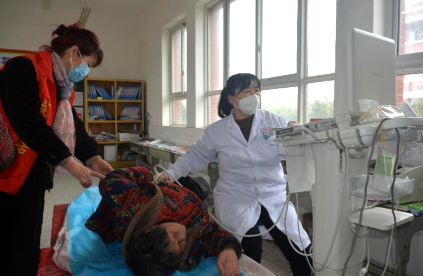 ▲南阳市中心医院专家免费为村民提供量血压、测血糖、超声检查、心电图检查、眼底检查等医疗服务。