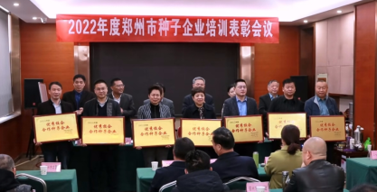 会上,郑州市种子协会对评选出的河南秋乐种业科技股份有限公司、河南金苑种业股份有限公司等26家“2022年度郑州市优秀种子企业”进行了表彰,为郑州市种子站、郑州市种子协会联合河南农业职业学院评选出的河南河南技丰种业集团有限公司、河南天存种业科技有限公司等15家企业授予“2022年度郑州市优秀校企合作种子企业”荣誉称号。