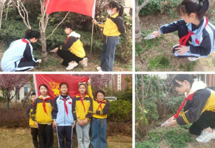 副大队长李嘉洁呼吁队员们从身边的点滴小事做起,走路时不随便践踏草坪,不随手乱扔垃圾,节约每一张纸、每一滴水,积极劳动,爱护植物,保护环境!