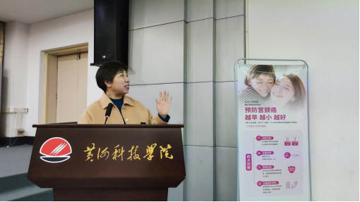 此外,本次活动特别邀请黄河科技学院附属医院妇产科主任医师——张凤莲担任此次的主讲嘉宾。张主任从事妇产科临床工作近30年,有着丰富的医学临床经验,她从身边的病例入手,用实例讲述女性宫颈癌的危害性以及预防措施,并极力呼吁广大女性朋友积极接种宫颈癌疫苗,从源头杜绝宫颈癌这种悲剧的发生。