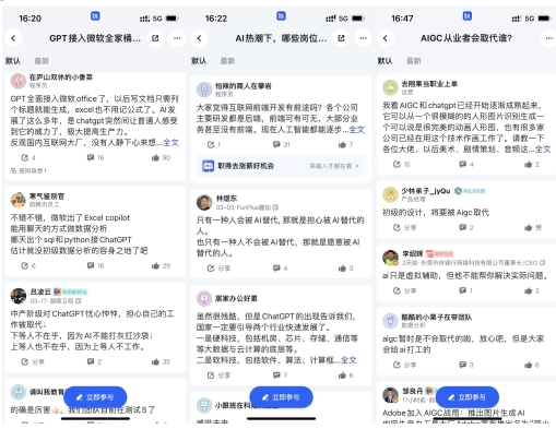 AIGC带来的颠覆性变革也给不少职场人带来前所未有的危机感。在脉脉上,“GPT接入微软全家桶,3秒1个PPT怕吗”“AI热潮下,哪些岗位不建议入行了”“AIGC从业者会取代谁”等话题备受热议。