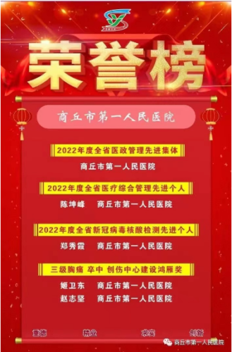 商丘市第一人民医院喜获2022年度河南省医政医管工作多项荣誉